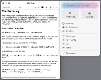 We are pleased to announce the release of bBox version 1.06 for Claris® FileMaker®, which adds support for macOS text windows and many update enhancements, including to bBox's support for integrating Python code with your FileMaker apps.