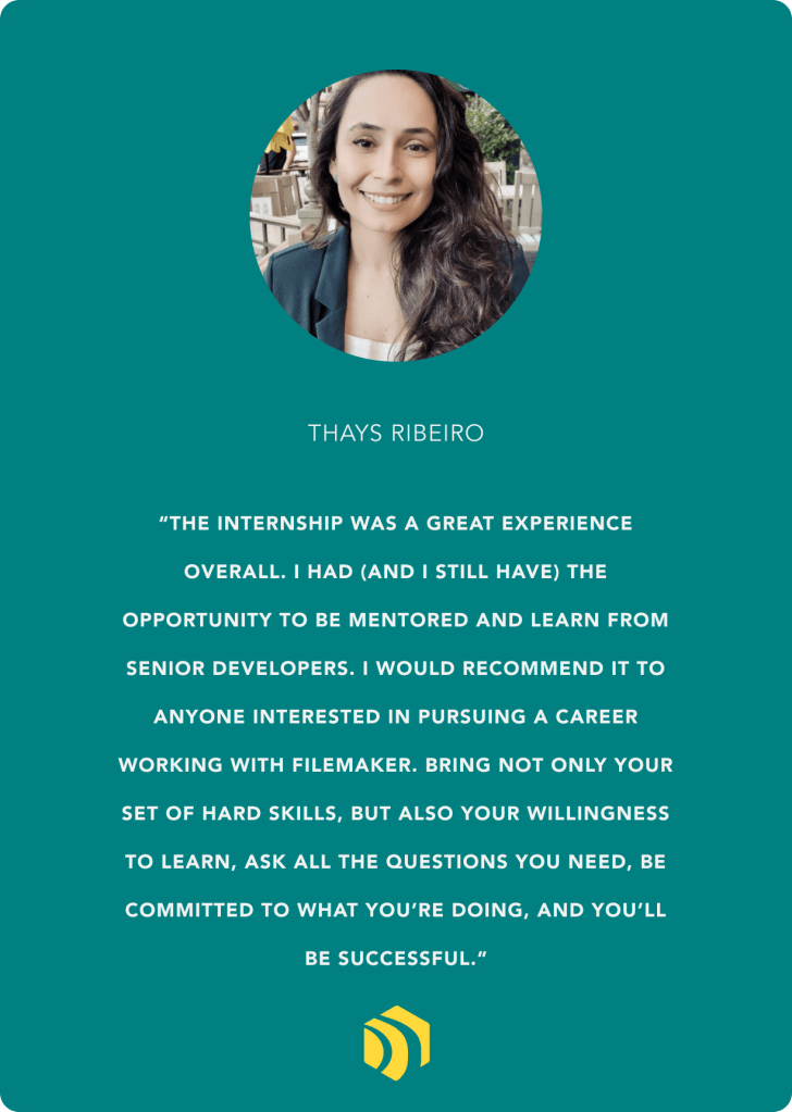 Lyazzat Zhanshayeva (author of this post) and Thays Ribeiro completed the Beezwax apprenticeship program, and work full time at Beezwax as an Engineering Manager and a FileMaker Engineer, respectively.