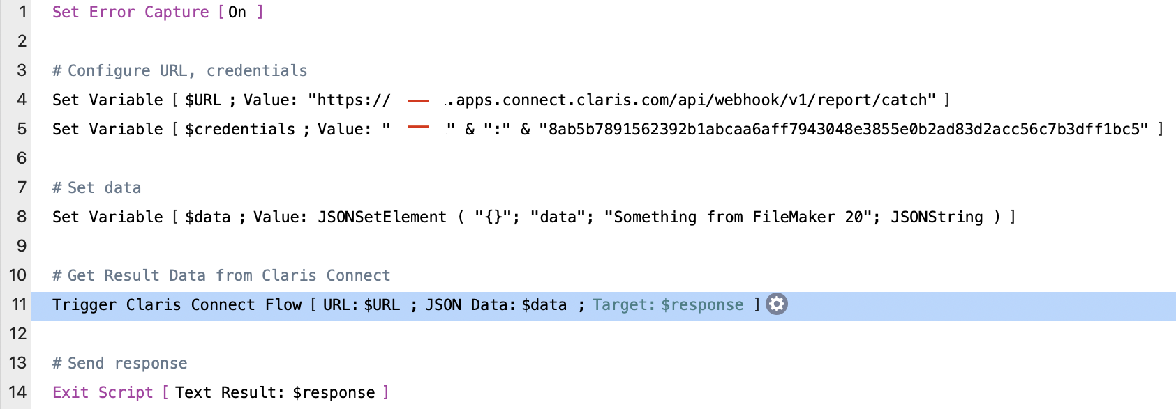 In the past when trying to set up a trigger to a Claris Connect Flow you might have had a script that looked like this prior to FileMaker 2023: