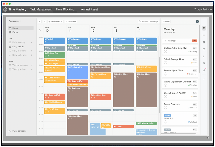 Time blocking lets you control your calendar before others do. Start with a morning planning ritual I call “Hour One”: